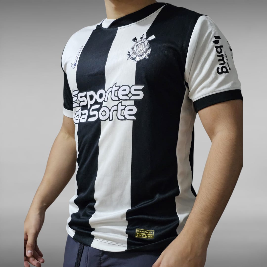 Demostrá tu pasión por el Timão con esta imponente tercera camiseta del Corinthians temporada 2024. Con un diseño a rayas verticales negras y blancas, esta edición especial se aleja del estilo tradicional para ofrecer un look moderno y agresivo que destaca tanto en la cancha como en la calle.