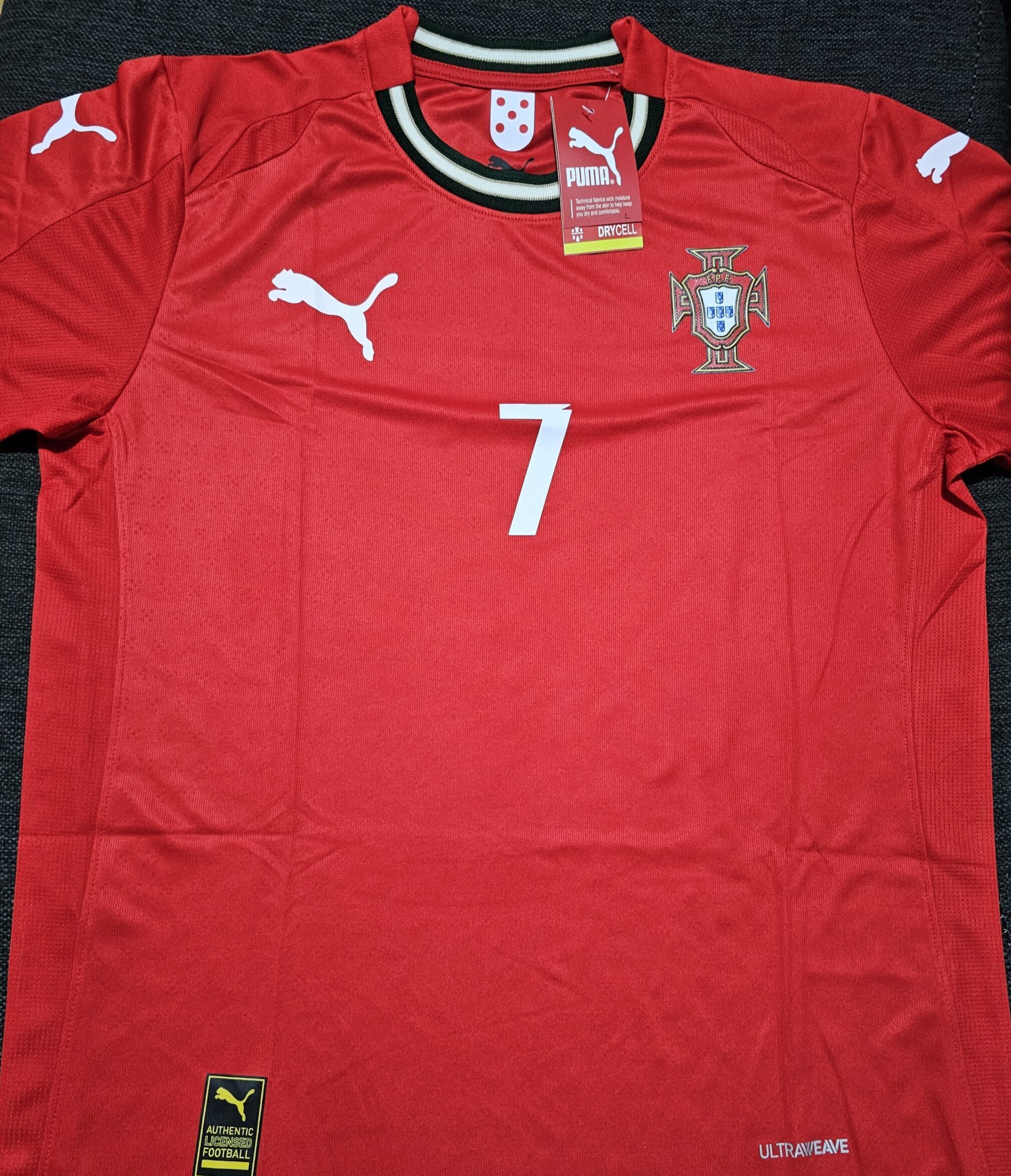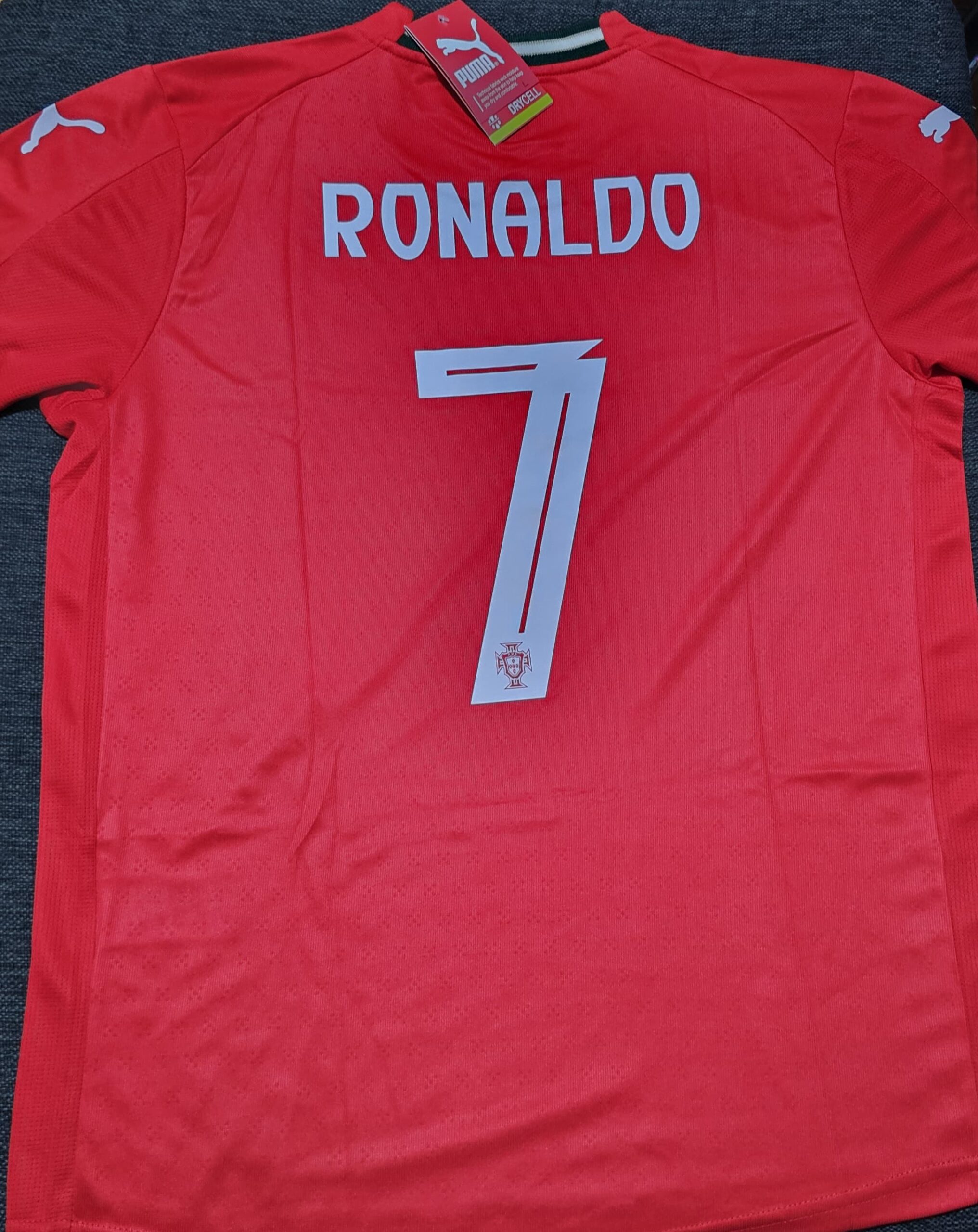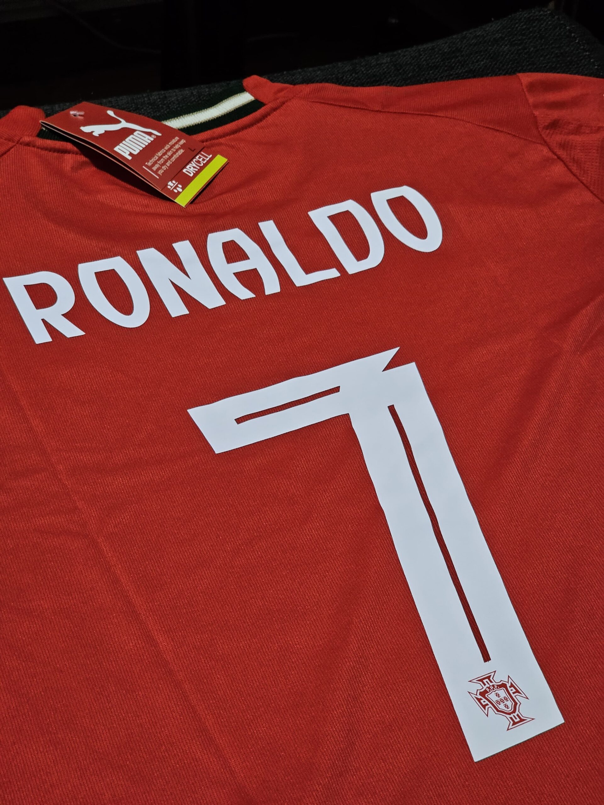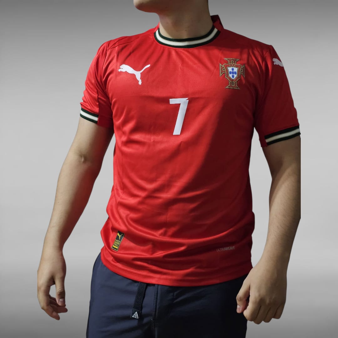Reviví la grandeza de CR7 con la camiseta titular de Portugal para la temporada 2025. Diseñada por Puma, esta edición especial combina elegancia y rendimiento, con los clásicos tonos rojos y detalles dorados que simbolizan la historia y el orgullo luso. El dorsal 7 y el nombre de Ronaldo hacen de esta pieza un homenaje al máximo ídolo portugués.
