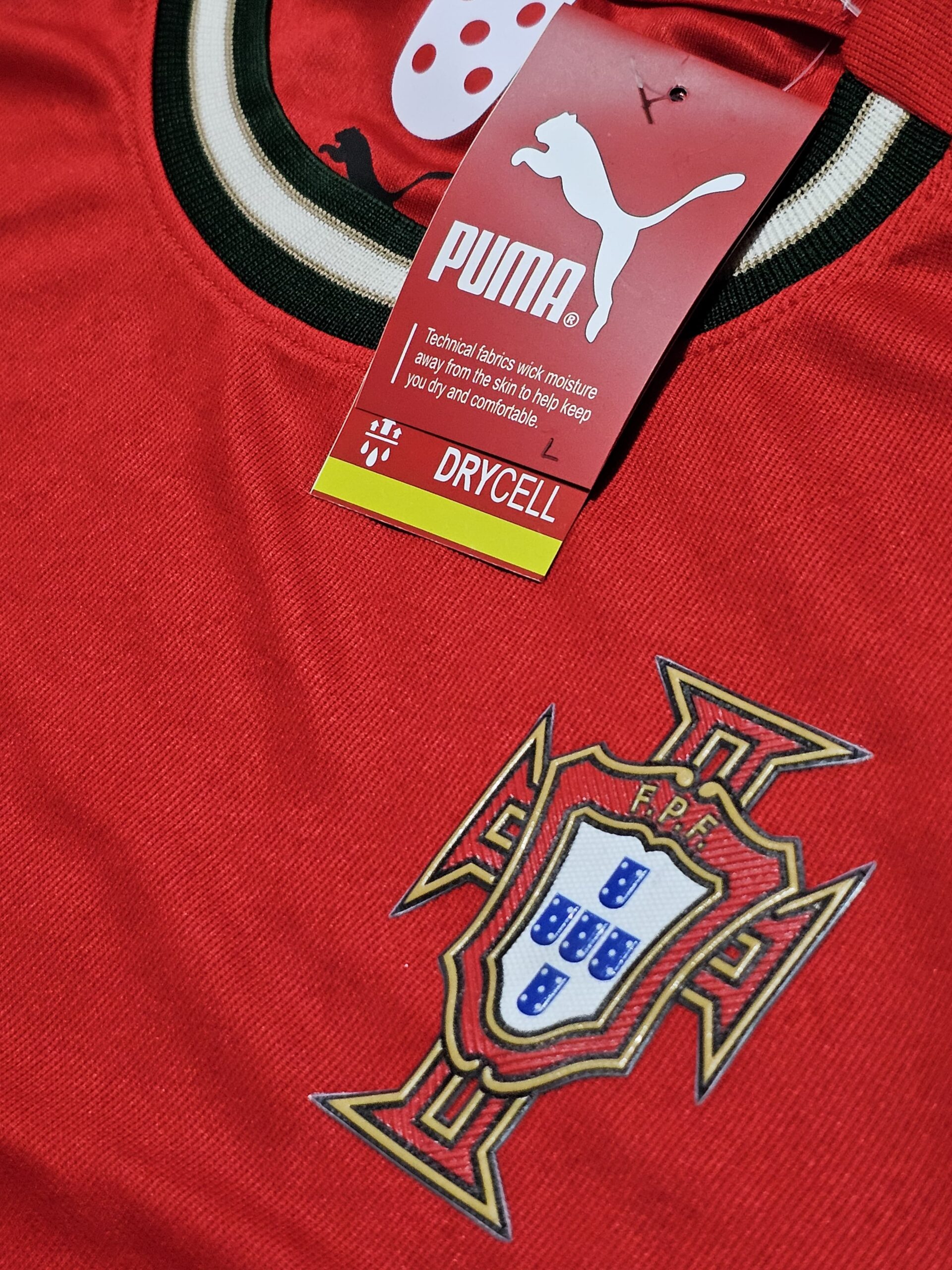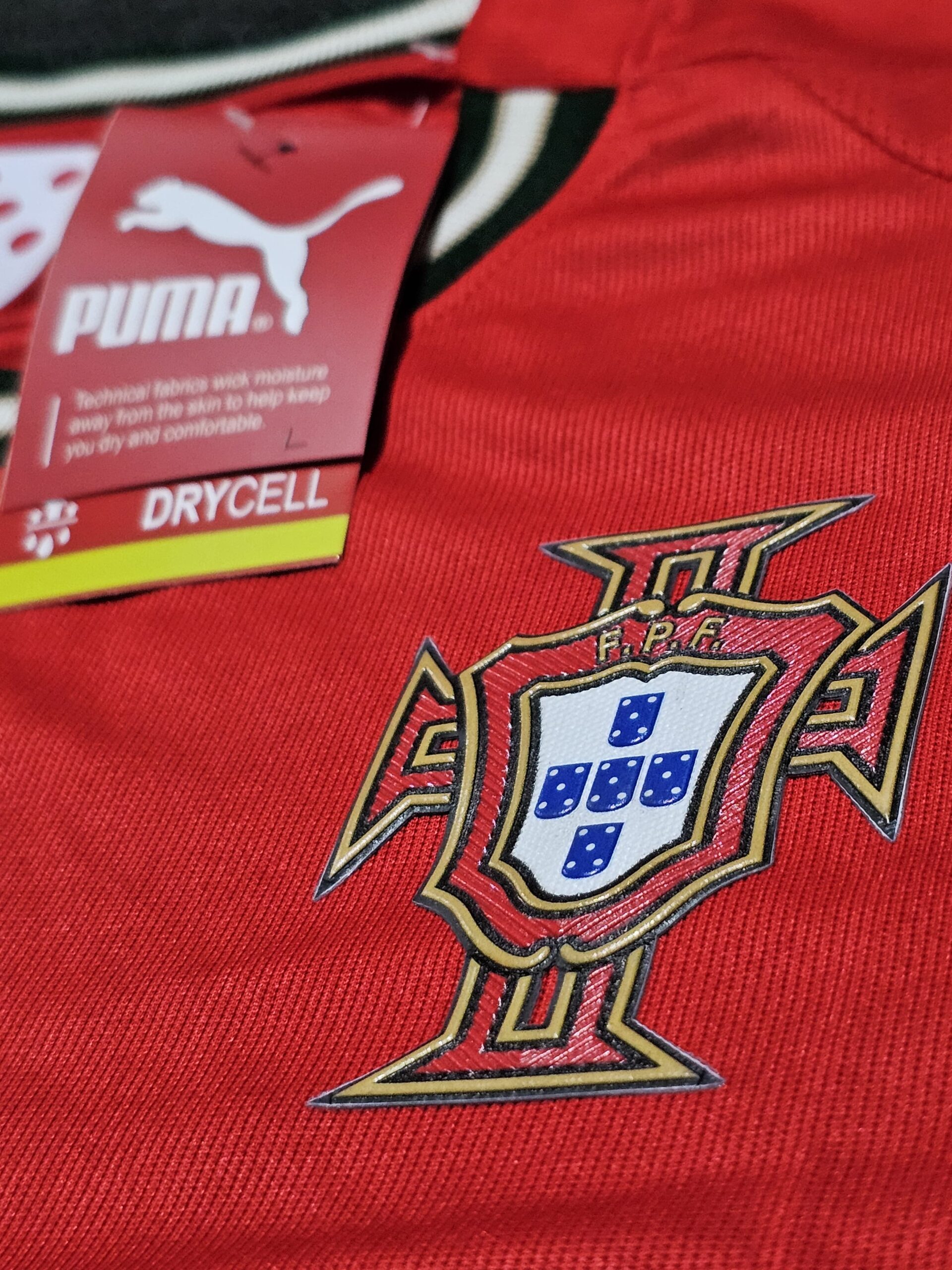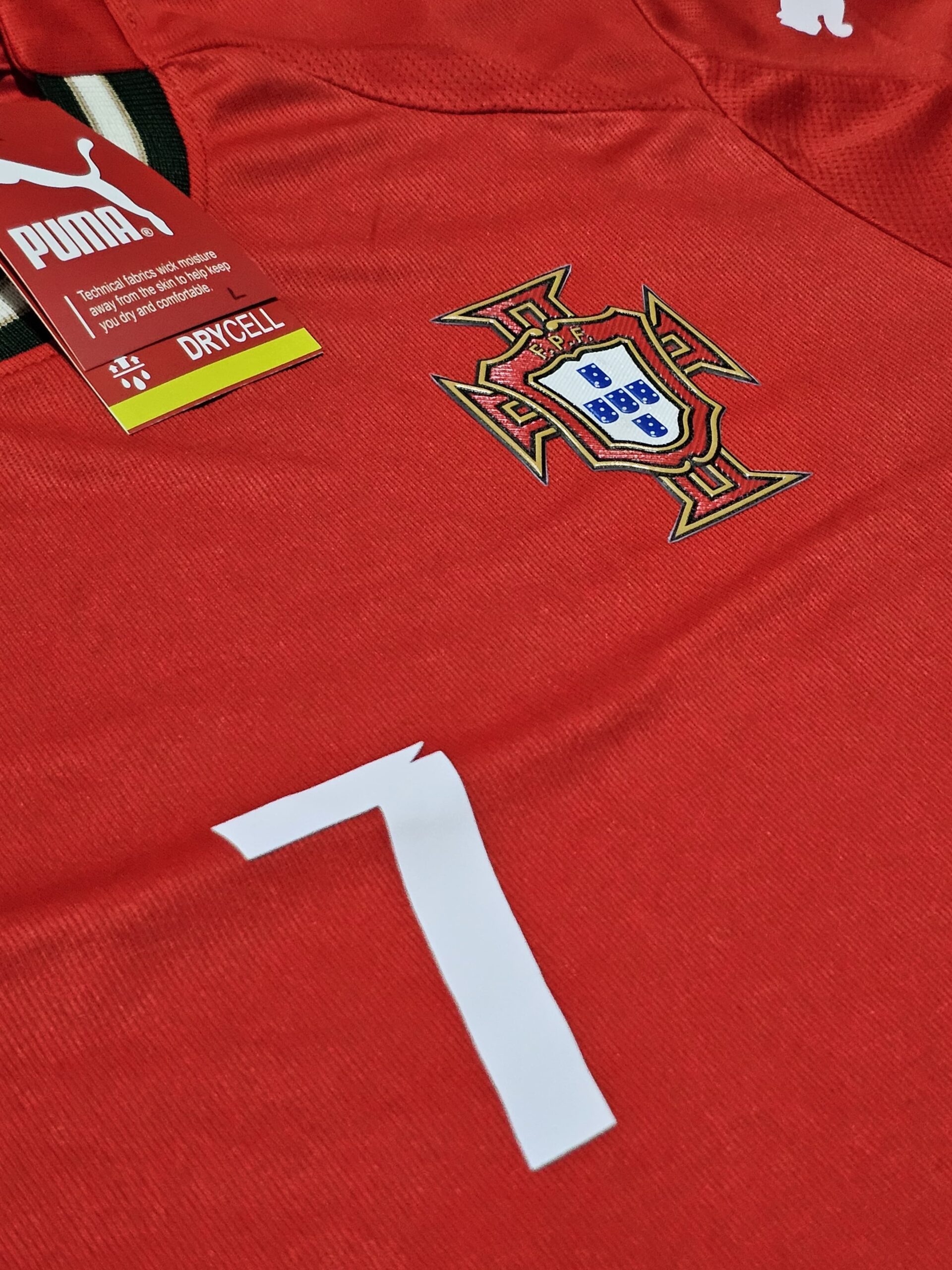 Reviví la grandeza de CR7 con la camiseta titular de Portugal para la temporada 2025. Diseñada por Puma, esta edición especial combina elegancia y rendimiento, con los clásicos tonos rojos y detalles dorados que simbolizan la historia y el orgullo luso. El dorsal 7 y el nombre de Ronaldo hacen de esta pieza un homenaje al máximo ídolo portugués.